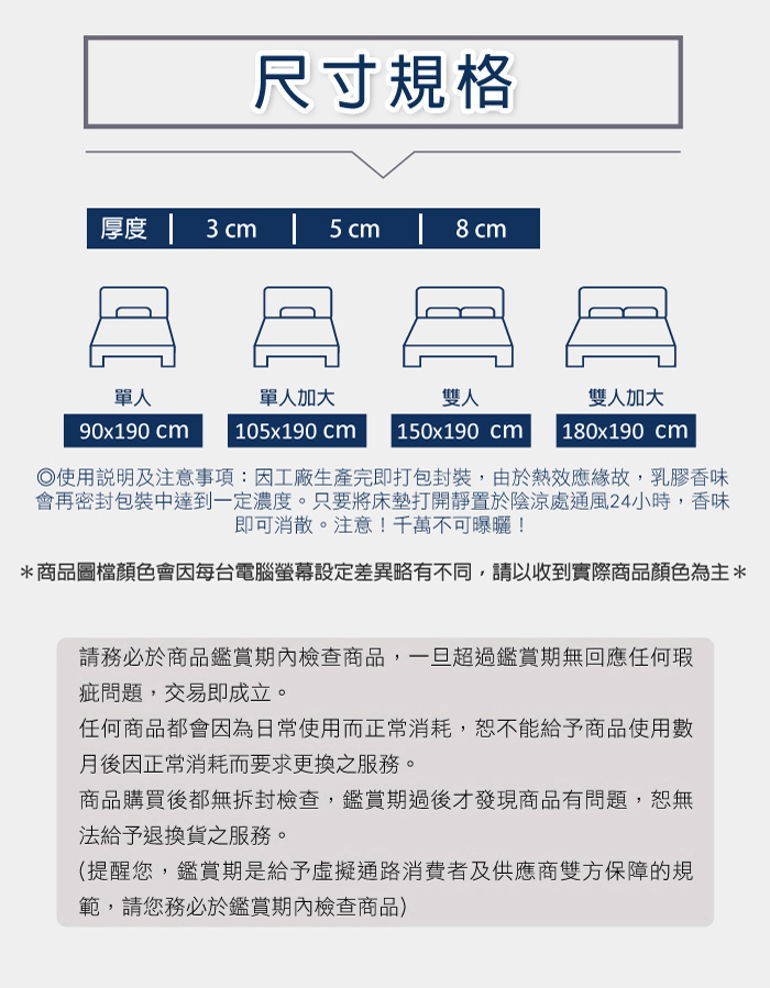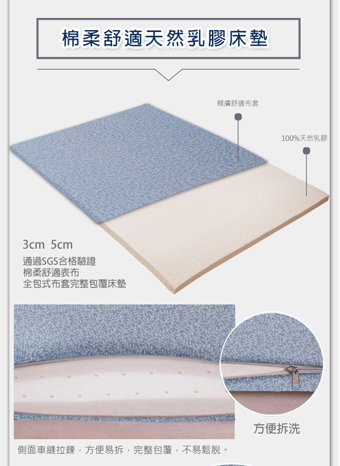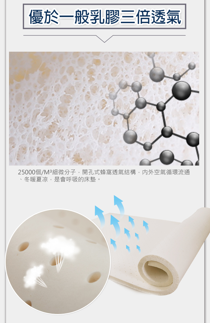 我要購買 涼感纖維表布、透氣舒適不悶熱可置於原床墊、床架、地面使用小資外宿、學生、房東最合用 |  【House Door 好適家居】乳膠床墊 涼感纖維表布5cm厚Q彈乳膠床墊-單大3.5尺(贈麵包型冰晶凝膠枕) 售價:3783